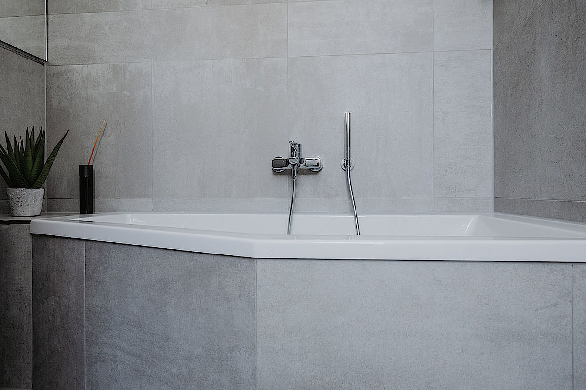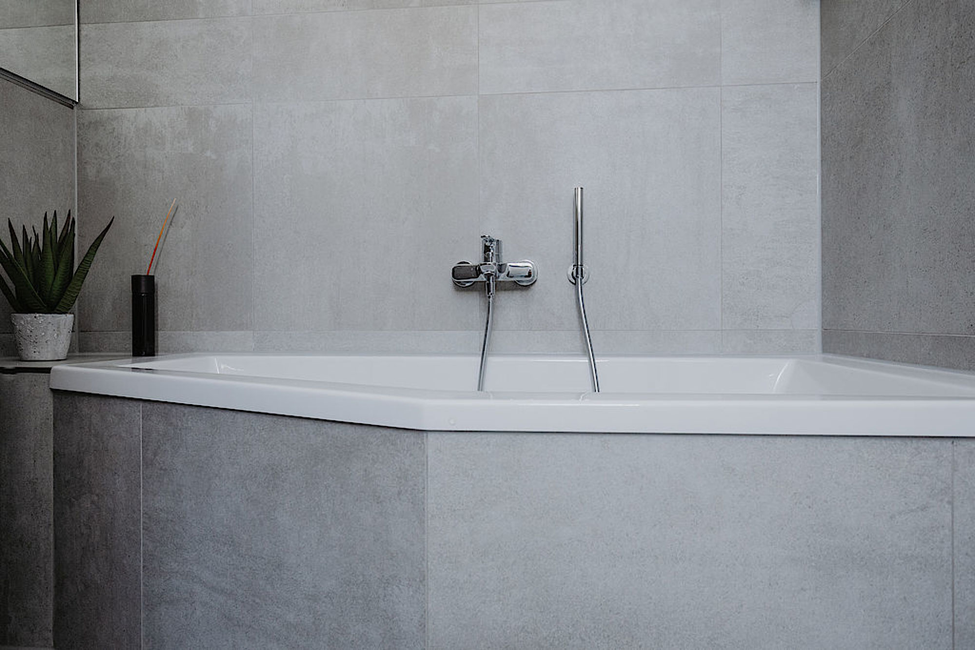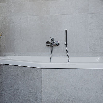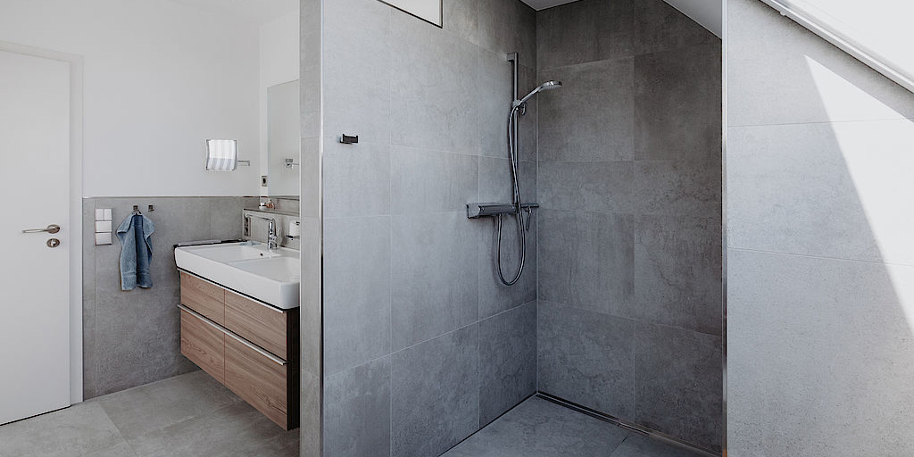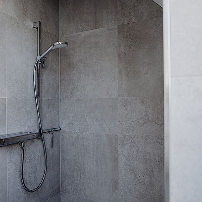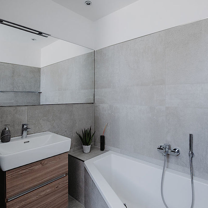 Mit Betongrau im Badezimmer setzen wir auf zeitlose, strukturierte und unempfindliche Oberflächen. Die Fliesen in Betonoptik verleihen dem Bad ein modernes Aussehen. Durch die Kombination mit den hellen Farben wirkt der Raum größer und offen und lässt viel Spielraum für spannende Farbkombinationen der Handtücher und Dekorationen. So startet man jeden Tag mit einem tollen Gefühl.