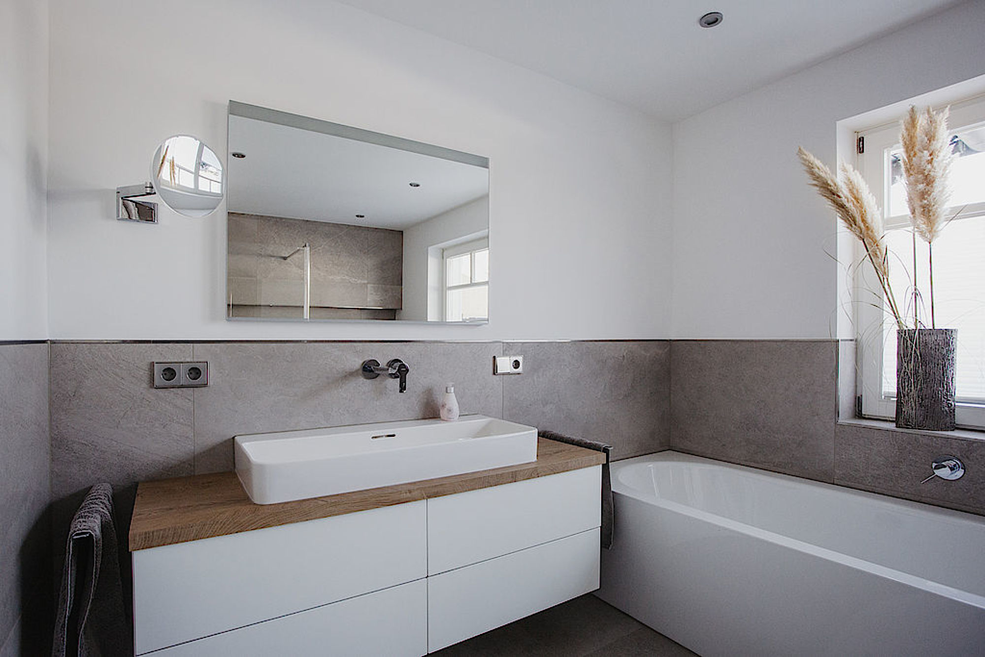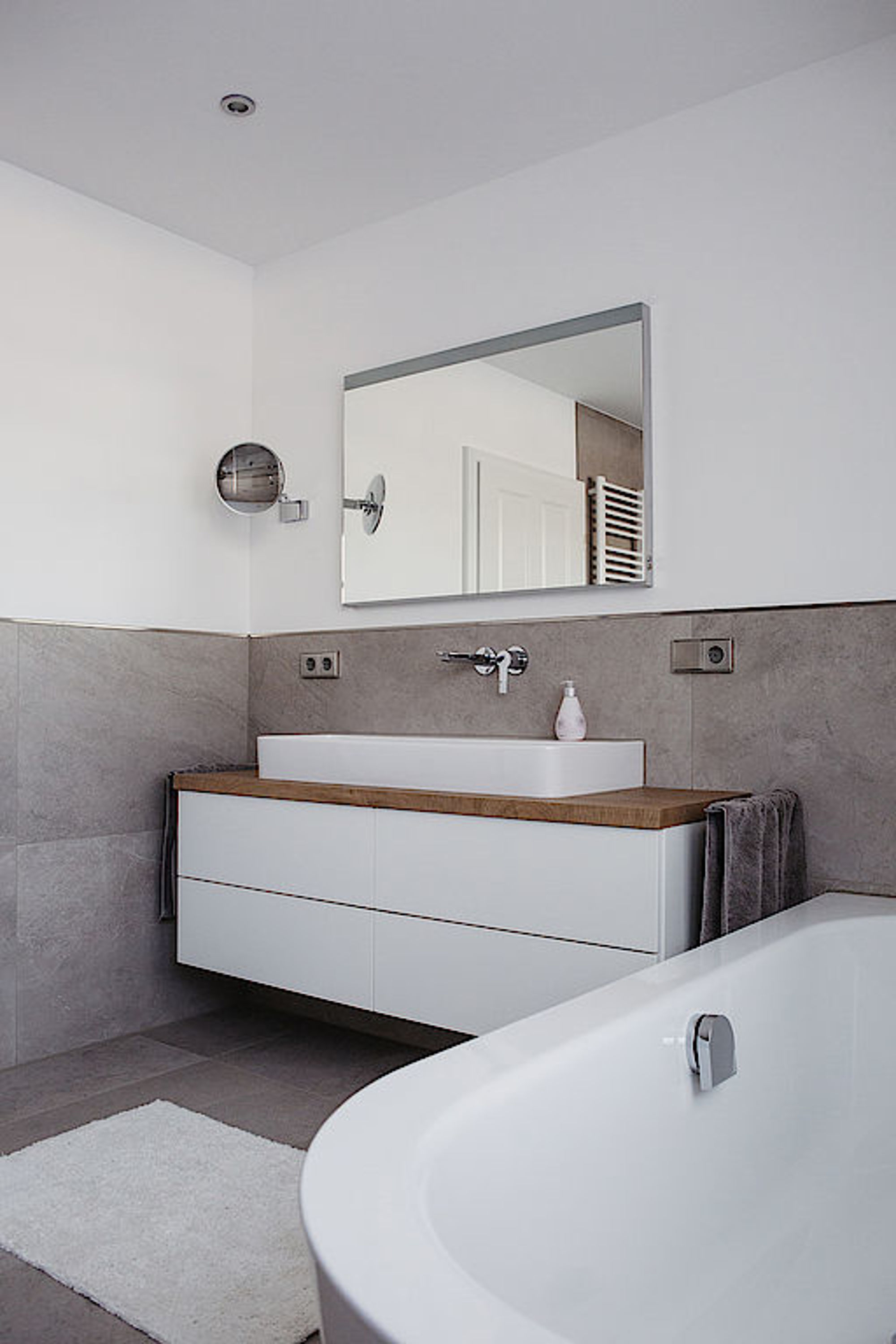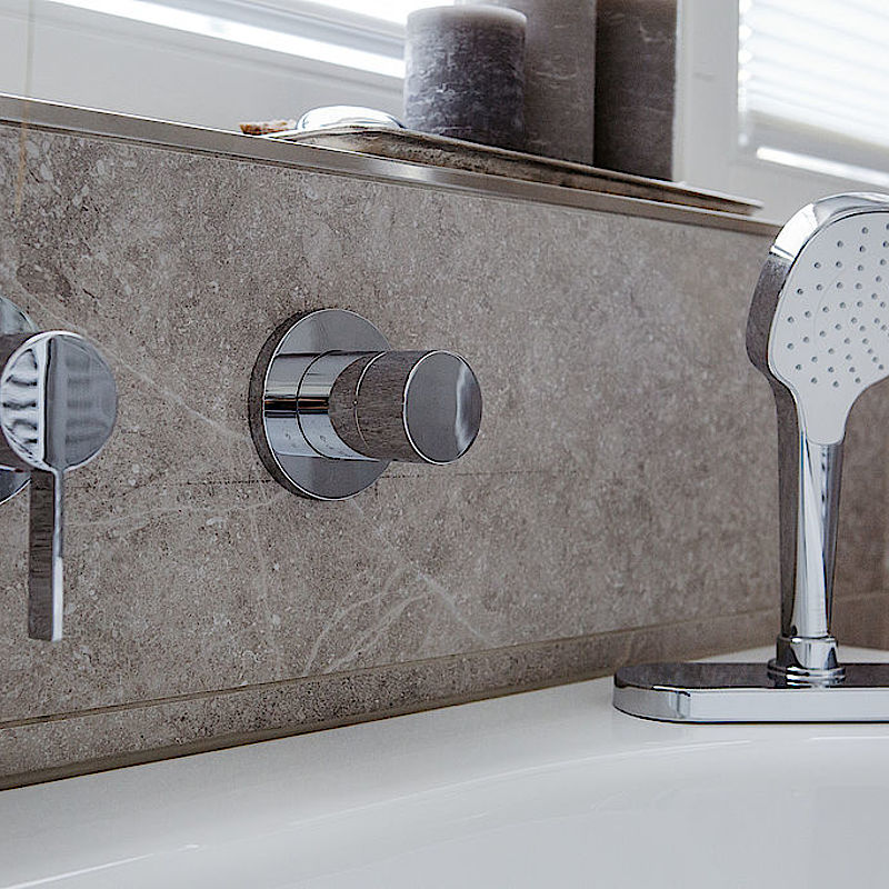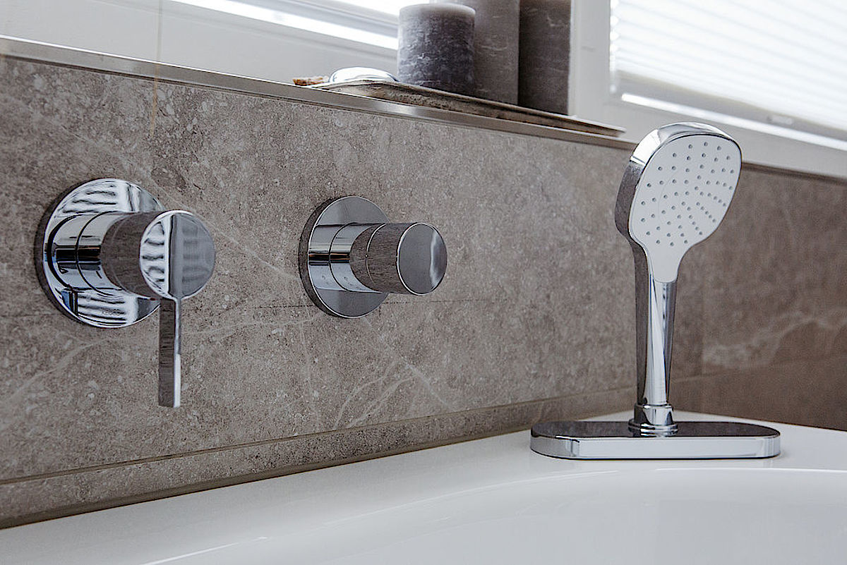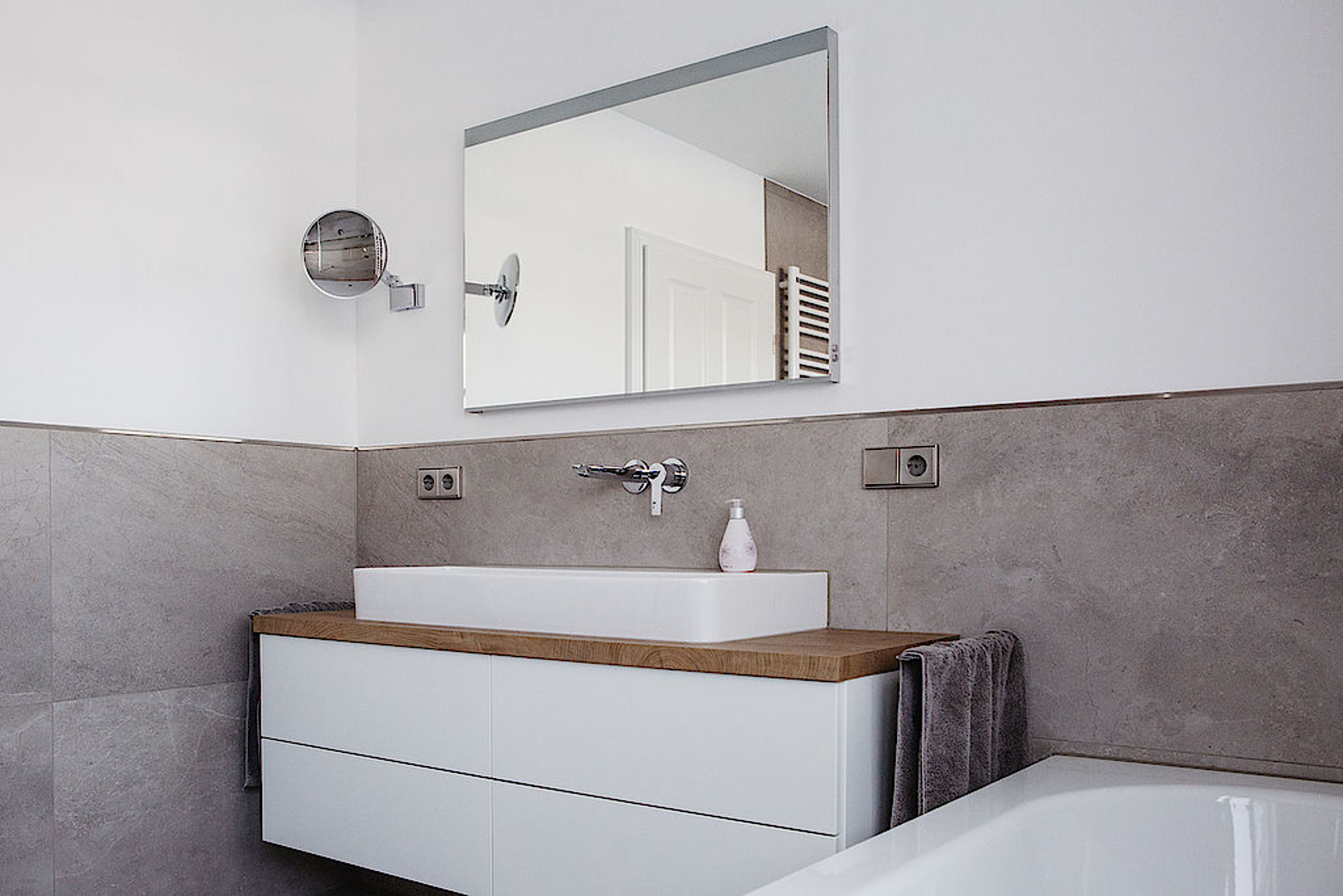 Bewusst haben wir dazu hochwertige Unterputz-Armaturen gewählt, sie unterstützen den klaren Look des Badezimmers.