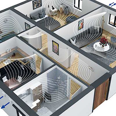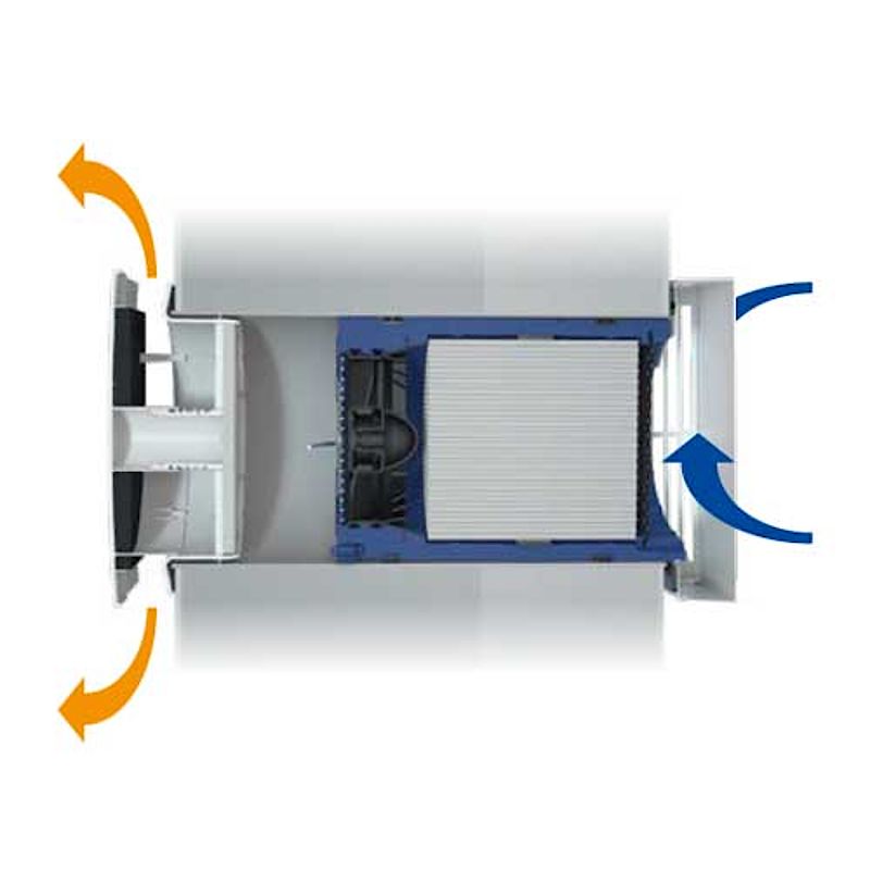 Die Geräte werden raumweise installiert. Aufgrund des kontinuierlichen Luftaustausches wird ein permanenter Feuchteschutz gewährleistet. Die kompakten, handlichen Geräte werden normalerweise neben dem Fenster oder im Bereich der Fensterbank installiert. In nur einem Gerät werden Zu- und Abluft perfekt koordiniert. Die von Pollen und Staub gefilterte Frischluft wird dabei kontinuierlich in den Raum geleitet.